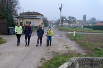Boucle de 13,5 km entre Isle-St-Georges et St Médard d'Eyrans. 41 participants. Temps doux, couvert et humide.