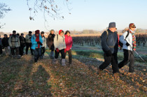 Trajet de 11 km autour de Léognan, suivi d'un repas de fin d'année au restaurant "les ailes" sur l'aérodrome de Saucats. 43 participants. Beau temps frais.