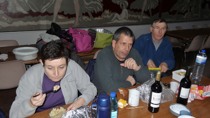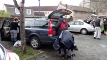 A midi, pique-nique dans la salle communale de St-Symphorien,
