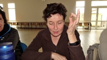 A midi, pique-nique dans la salle des fêtes de St André du Bois prêtée
