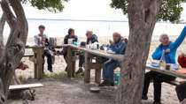 Le midi pique-nique au bord du lac, avec un repli sous la pagode après un